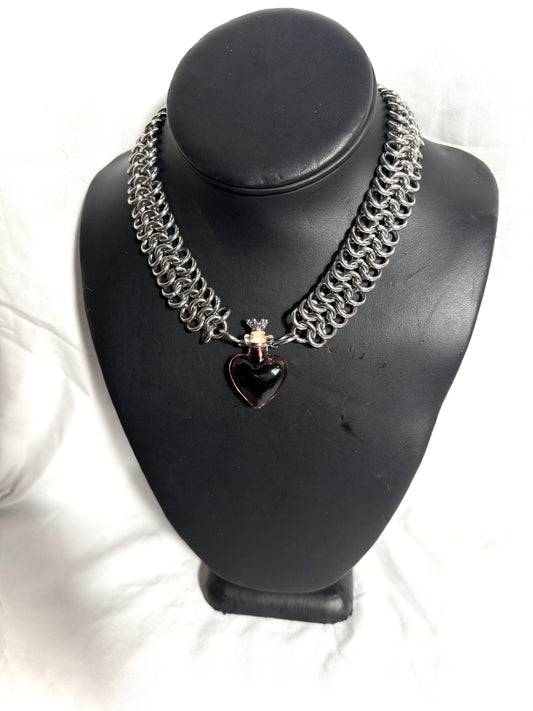 Vampira chainmaille heart vial necklace