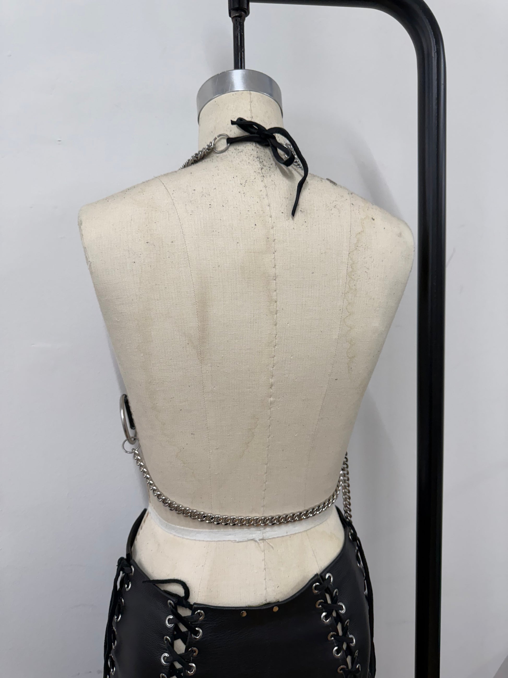 Handmade with genuine patent leather, steel rivets and stainless steel hand woven chainmaille. Made to fit your custom measurements